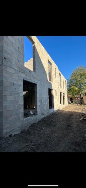 une démolition a l'aide d'un BRH d'une ancienne construction a été nécessaire pour ensuite faire des fondations à 3M de profondeurs à l'aide de tranchées et des remontées en blocs corp creux b60 posé sur des semelles filantes renforcées